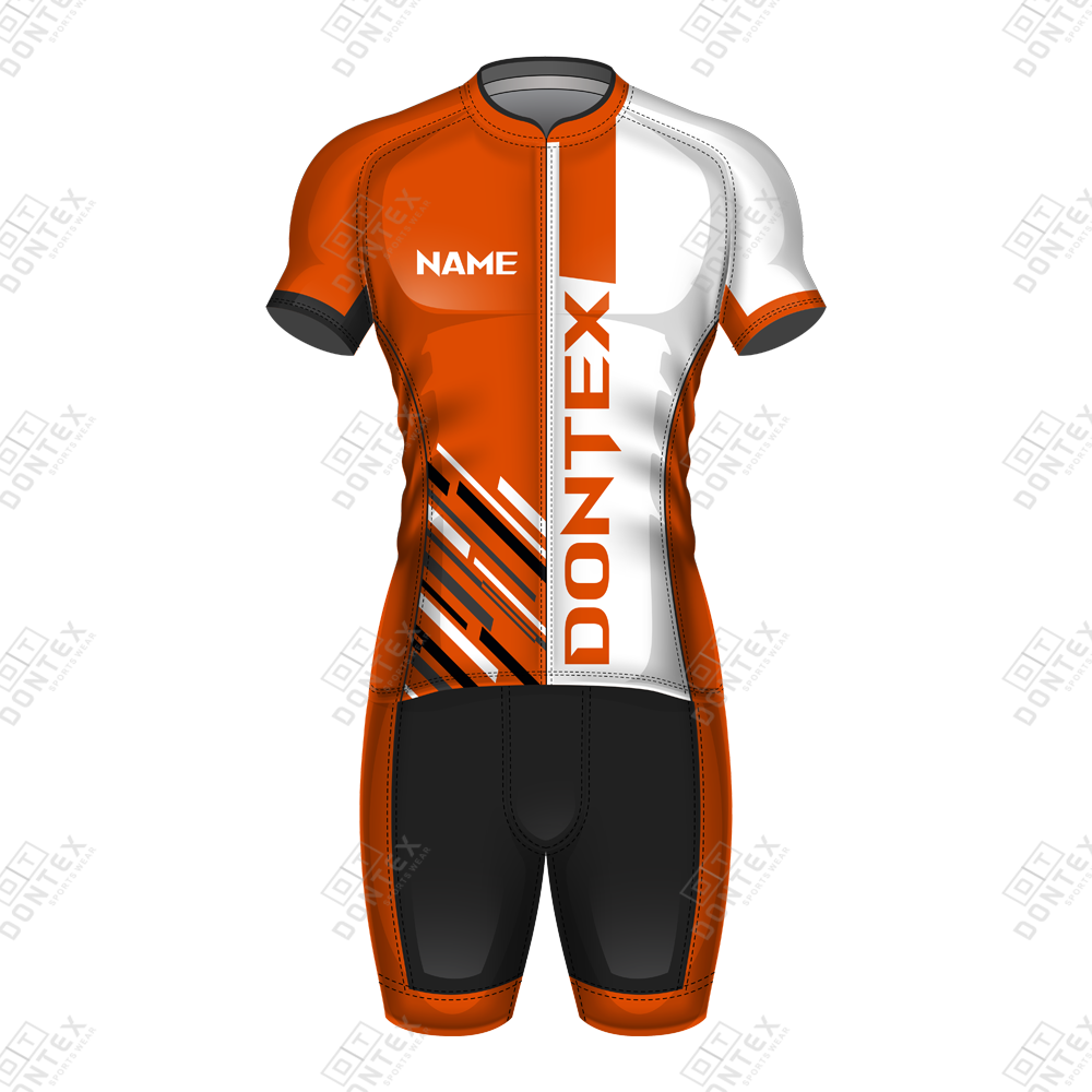 The Dontex Apex-Elite Velocity Triathlon Suit is a cutting-edge racing kit engineered with a full-length ventilation zipper, a high-visibility white and orange color palette, and premium 4-way stretch Lycra fabric for peak endurance performance. This advanced suit is meticulously designed to provide a frictionless transition between disciplines while offering the ultimate anatomical fit for elite athletes.