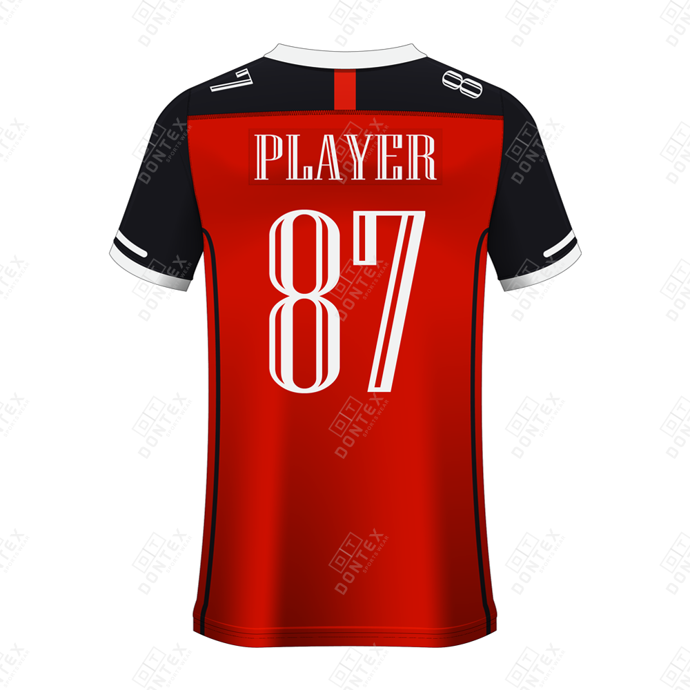 The Dontex Crimson-Vortex Pro Football Jersey is a high-performance athletic garment designed for elite competition. Built from High Quality 100% Polyester Fabric, this jersey combines a striking geometric “V” chest aesthetic with advanced moisture management to keep athletes performing at their peak.
