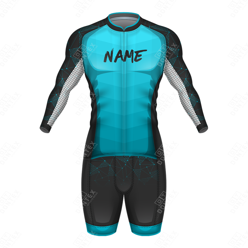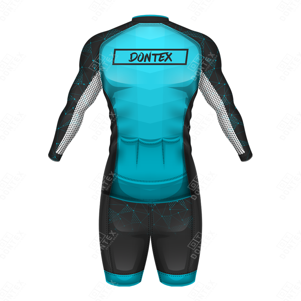 The Dontex Cyber-Tech Velocity High-Performance Professional Triathlon Suit is a technical masterpiece designed for endurance athletes, featuring an integrated full-length zipper, a sophisticated cyan-on-black geometric texture, and ultra-flexible 4-way stretch High Quality Polyester Spandex Lycra fabric. This elite triathlon suit is engineered with a focus on moisture-wicking efficiency and a high-compression anatomical fit that stabilizes muscles while providing a streamlined profile for maximum speed in the water and on the bike.