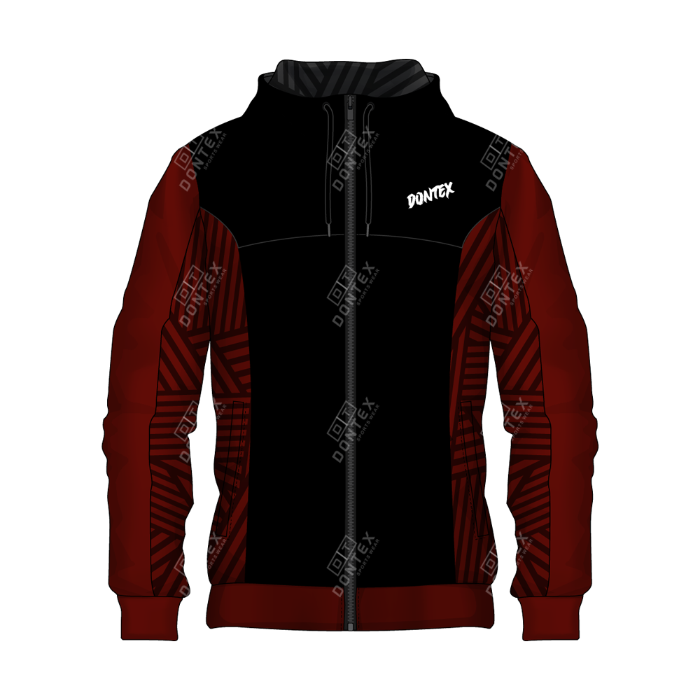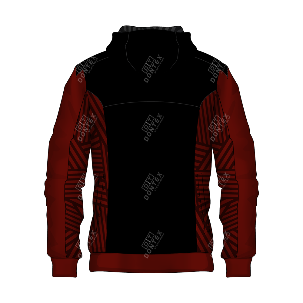 The Dontex Eclipse-Maroon Full-Zip Fleece Hoodie is a masterclass in athletic insulation, featuring a deep black torso accented by dark maroon sleeves and tonal geometric side paneling. This professional training garment is constructed from High-Quality Cotton/Polyester Fleece Fabric, engineered to provide maximum thermal efficiency and a structured athletic profile for intense outdoor or gym conditioning.
