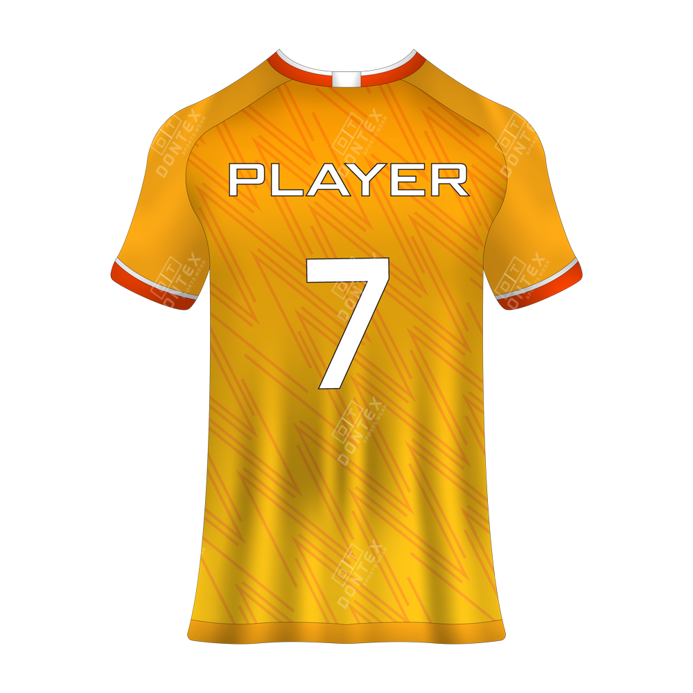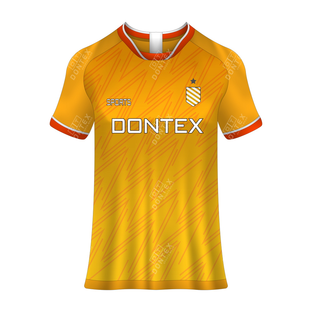 The Dontex Lightning-Strike Pro-Performance Elite Soccer Jersey is a technical masterpiece designed for professional athletes, featuring a vibrant citrus-orange base, aggressive geometric “lightning” textures, and High Quality 100% Polyester Interlock Fabric. This elite soccer jersey is engineered with a focus on maximum moisture-wicking efficiency and a performance-driven anatomical fit that provides a streamlined profile for maximum speed and agility on the pitch.