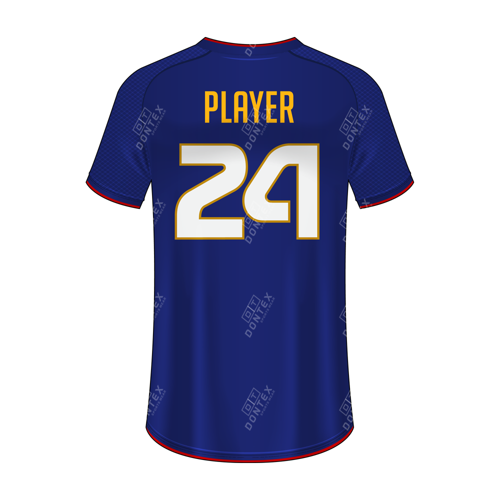 Enhanced Visual Identity: The deep navy and red contrast with high-visibility white-and-gold central numbering ensures the athlete maintains a powerful and professional presence on the field.