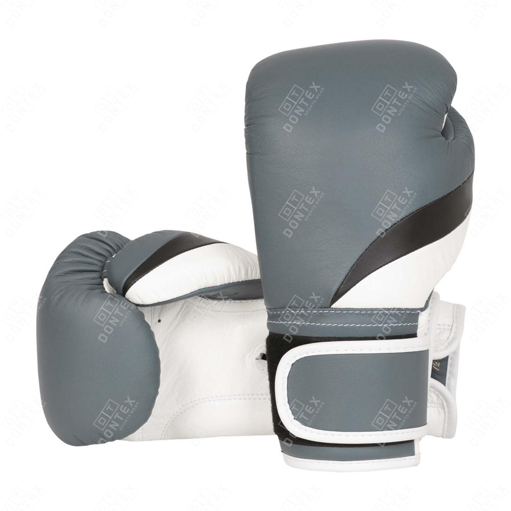 The Dontex Tri-Tone Apex Genuine Leather Pro Boxing Gloves are a technical masterpiece designed for combat athletes, featuring a modern grey, white, and black colorway and Premium Top-Grain Genuine Leather. These elite gloves are engineered with a focus on maximum hand protection and an ergonomic anatomical fit that provides a streamlined profile for explosive punching power and superior wrist stability in the ring.